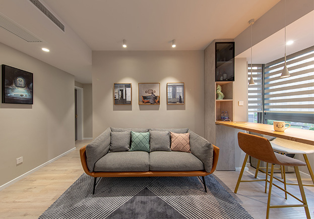 設(shè)計(jì)師:姬德鵬 風(fēng)格:現(xiàn)代簡約 戶型:90㎡ 兩室兩廳
