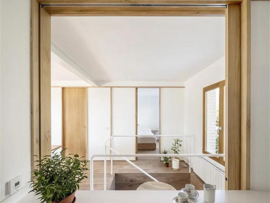 質(zhì)鼎設(shè)計師把內(nèi)部下沉的三處庭院位置的土層挖去,居住空間立馬就會多了新的領(lǐng)域,這樣既增加了居住面積,還能讓半地下層的臥室有了良好的采光和通風(fēng),全家人的居住體驗也更豐富了起來。
