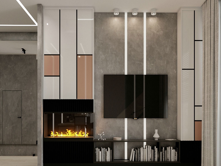 值得一提的是,此處壁爐的選擇,是不可或缺的加分項。設計師大膽在客廳的電視柜旁邊設計開放壁爐,對于主張環保理念的業主一家來說,真是再合適不過了。