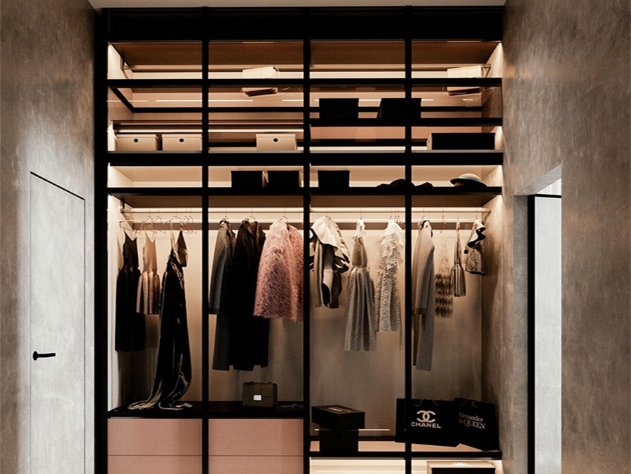 擁有一個獨立的衣帽間,可以說是很多人的夢想。我們將衣帽間設置為一個獨立的存在,打造了一款做舊灰色的柜子。
