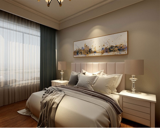 整體裝潢絲毫不顯復(fù)雜,簡約美式的格調(diào),是業(yè)主對生活品質(zhì)的一種品鑒!