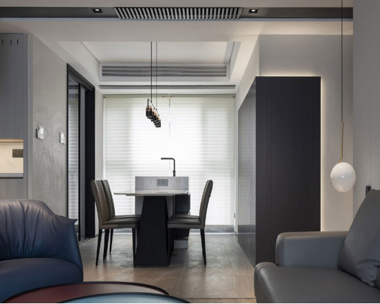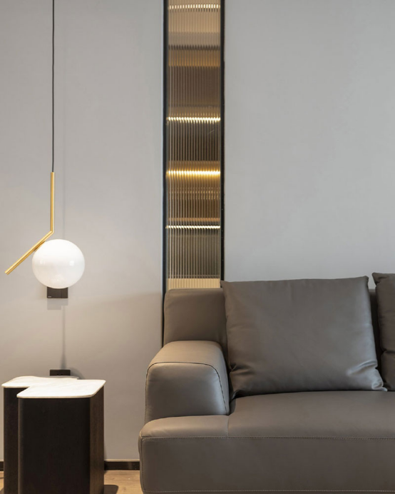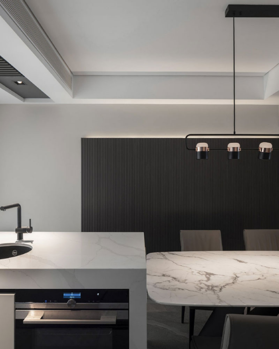 極簡幾何線條的元素貫穿于燈具、家私和裝飾中,正是行事利落干練的精英作派。