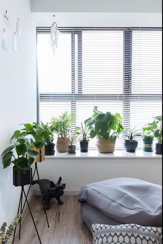 豐富的綠植讓人感覺在靜謐中多了一絲靈動纖小的溫暖,靠窗的收納柜擺放著生活的溫暖瑣碎,小巧的巴哥犬和輕巧的羽毛擺件俏皮溫軟,生活不止有遠(yuǎn)方的霞,還有當(dāng)下和鮮花。