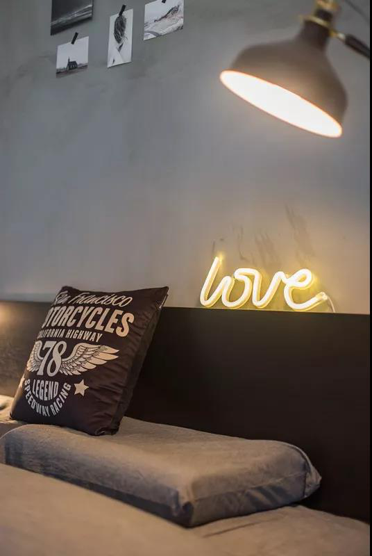Loft風(fēng)格的元素,使整個空間顯得簡約大方。簡約的空間,裝滿生活的歡喜,休息一晚,明天依舊是晴天。
