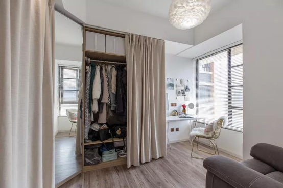 女主人小小拿到新房的喜悅,還尤記在心,對新家的想象還歷歷在目。她和老公都喜歡北歐的簡約感,也想要loft風(fēng)的深色質(zhì)感。 設(shè)計(jì)師從他們的需求出發(fā),一點(diǎn)點(diǎn)將夢想實(shí)現(xiàn)。考慮到戶型偏小,所以兩個房間一個做主臥室,另一個做成衣帽間,滿足儲物,也滿足他們對生活的品質(zhì)追求。
