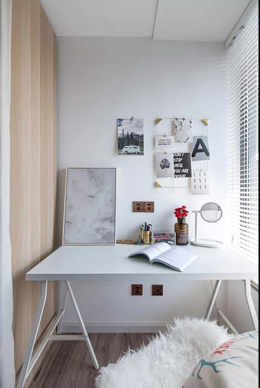 墻面和地板遙相呼應(yīng),簡約的設(shè)計(jì)在滿足需要的同時讓整個空間顯得干凈悠遠(yuǎn),有效的利用了空間,在兼顧美觀與實(shí)用的同時是對整體空間顏色的一個過渡,像是遠(yuǎn)山露出的積雪的巖。