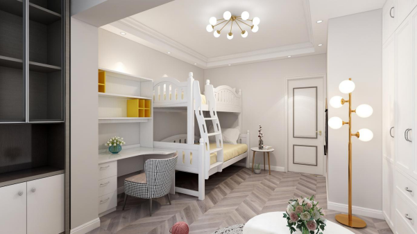 兒童房選用了上下子母床,滿足了偶爾父母過來住也富有童趣。整個兒童房體現了一種輕熟溫馨的感覺