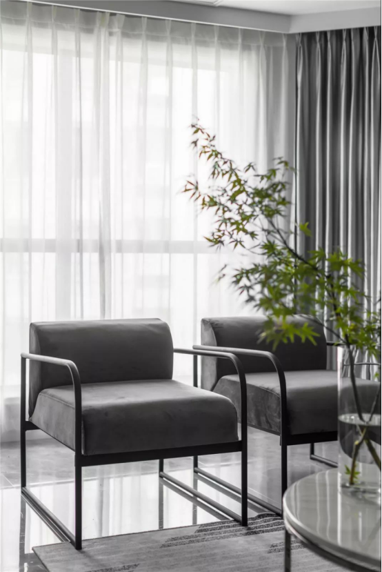 ▲高級灰的空間里,加入一抹綠,真是別有一番情趣。
