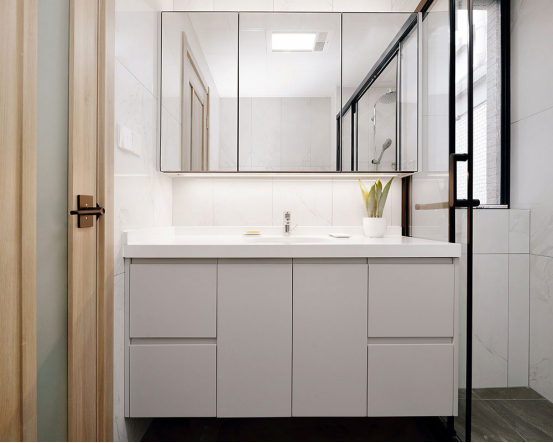 衛(wèi)生間采用干濕分離,白色與黑色系搭配也是時尚感十足。