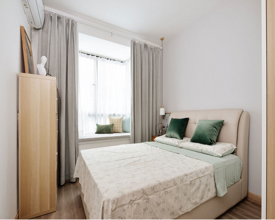 次臥采用主臥+飄窗的設(shè)計,以白色與原木色為主打色,有松軟的大床,舒適的大飄窗非常完美~