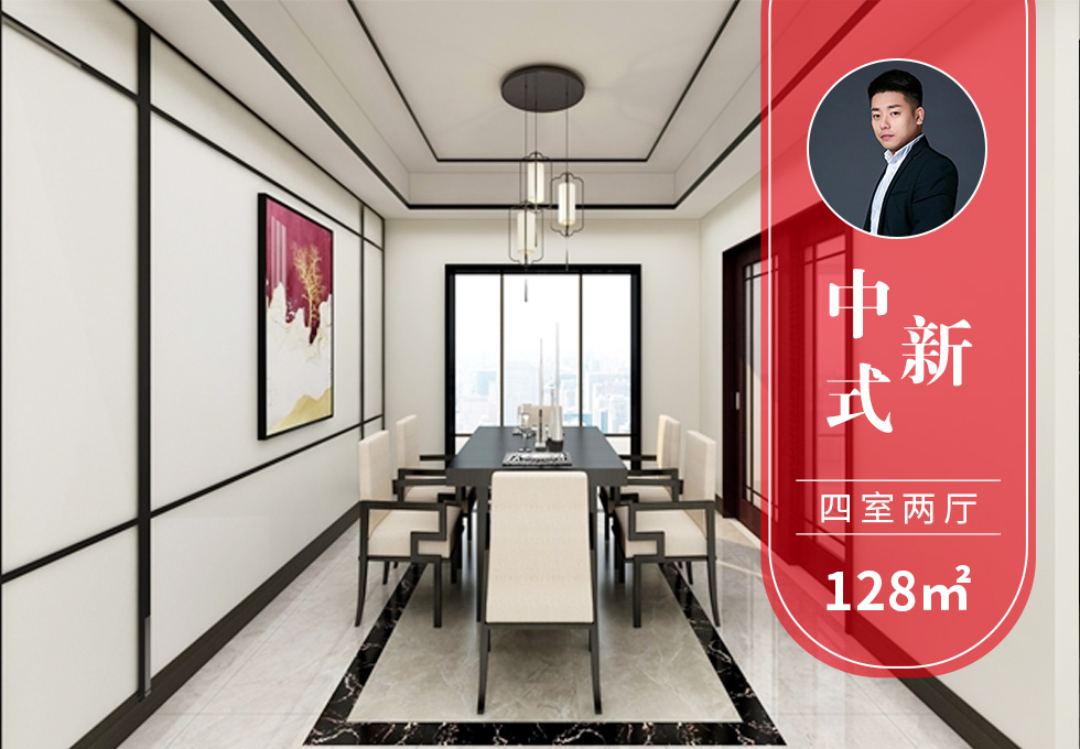 設計師:張婷婷 風格:新中式 戶型:128㎡ 四室兩廳