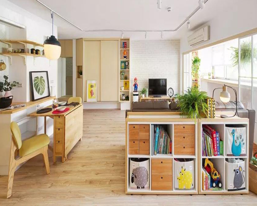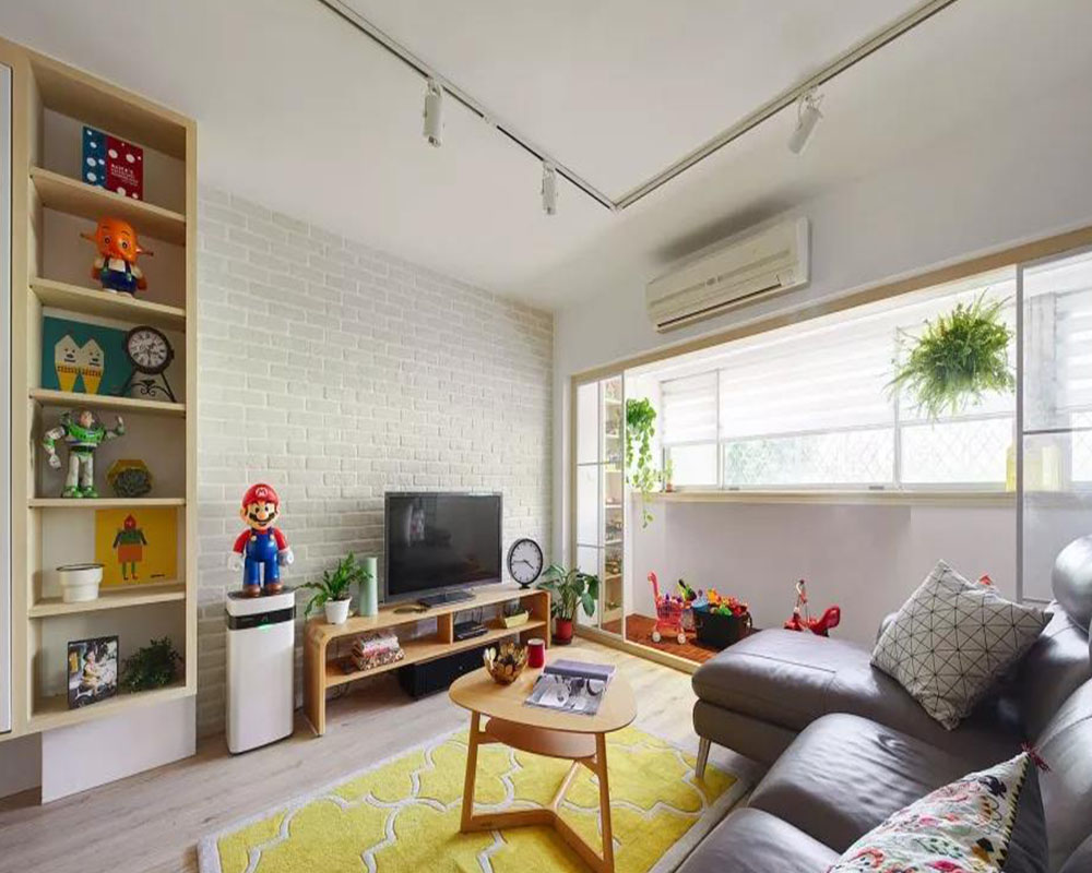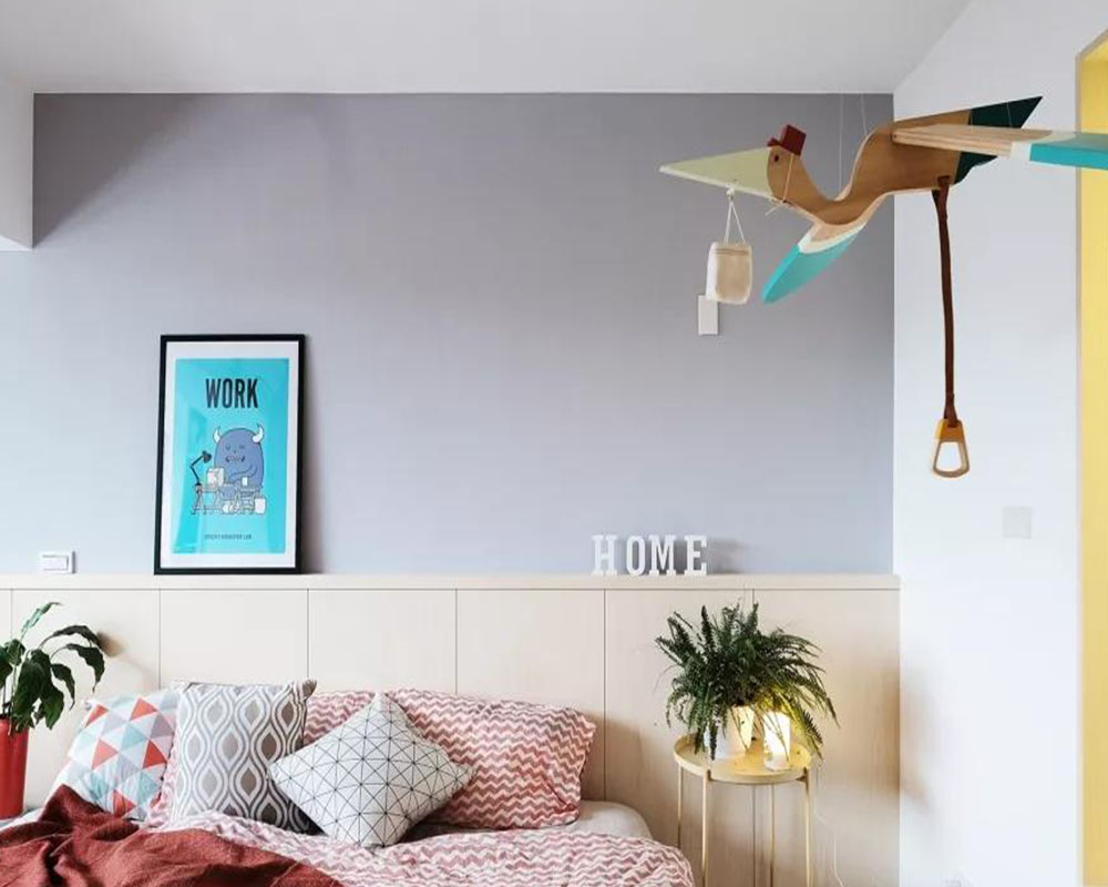 這是一套套內(nèi)面積大概93平米的老房子,因為房子已經(jīng)比較老舊,為了滿足小夫妻與小孩子的居住與生活需求,決定重新翻新一遍,整體在現(xiàn)代舒適的空間,搭配上木質(zhì)宜家范的家居,在空間的色調(diào)方面以大膽的跳躍設(shè)計,為孩子提供了一個寬敞自然的成長空間。
