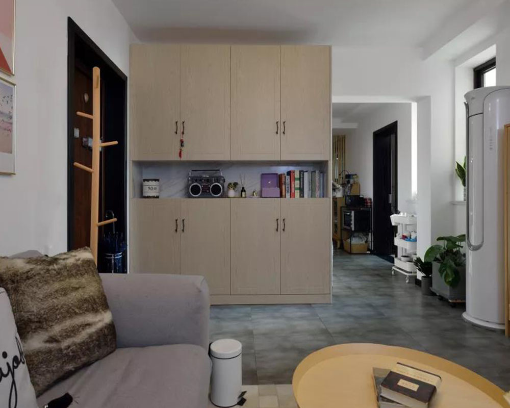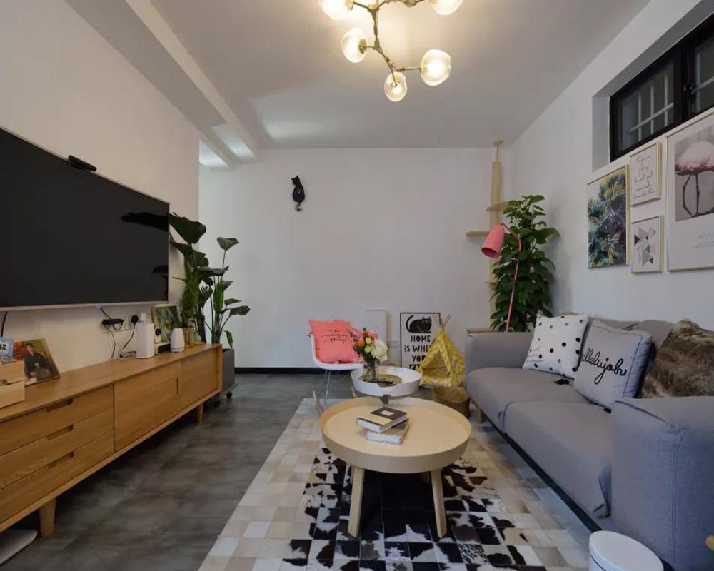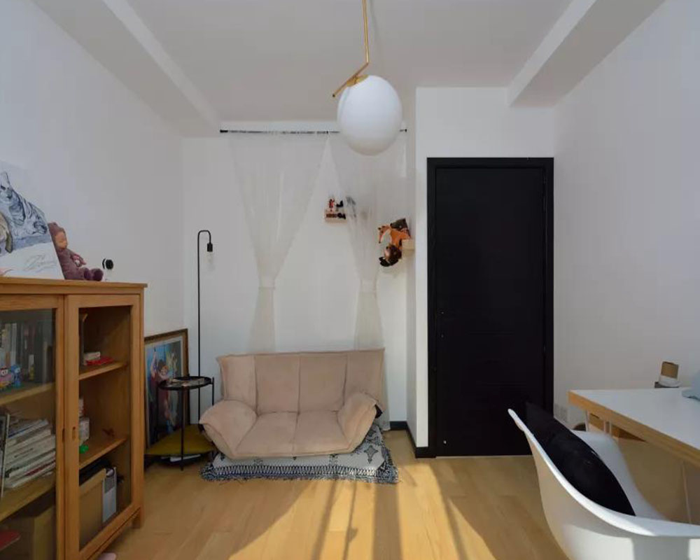 這個房子大概是109平米,整體裝修硬裝以簡單整潔為主,沒有什么復雜的造型與設計,在“近乎簡陋”的空間里搭配上舒適輕松的軟裝家居,營造出一個嫻雅溫馨的空間感。