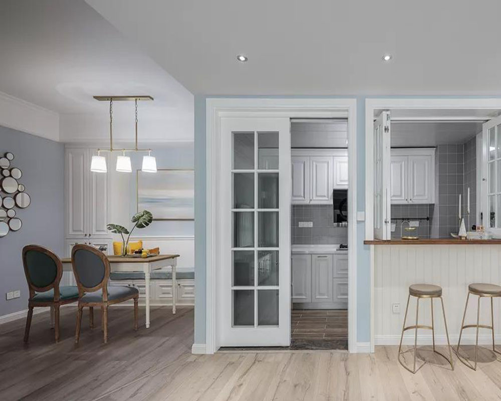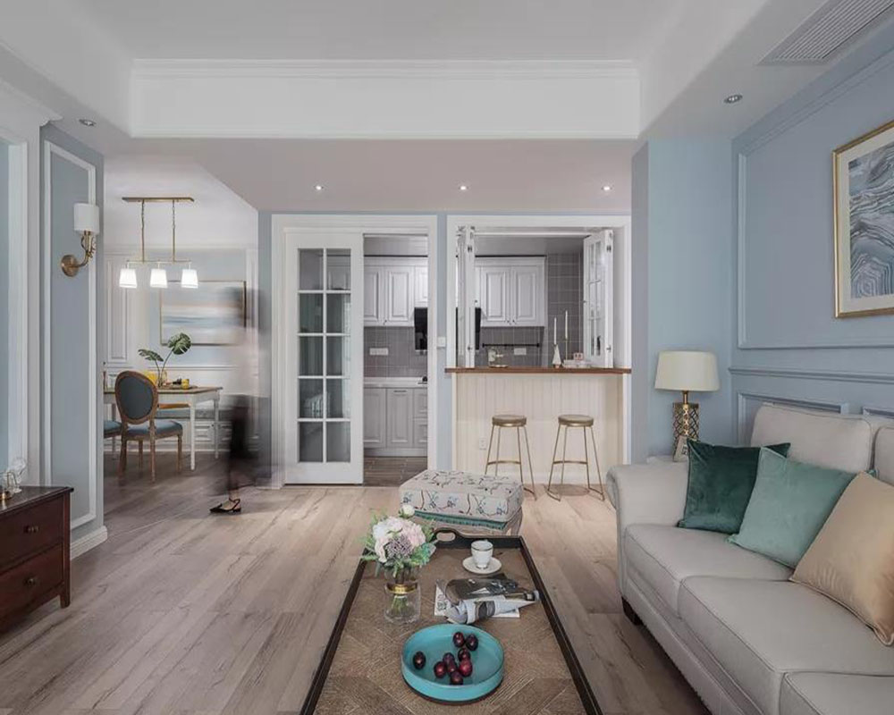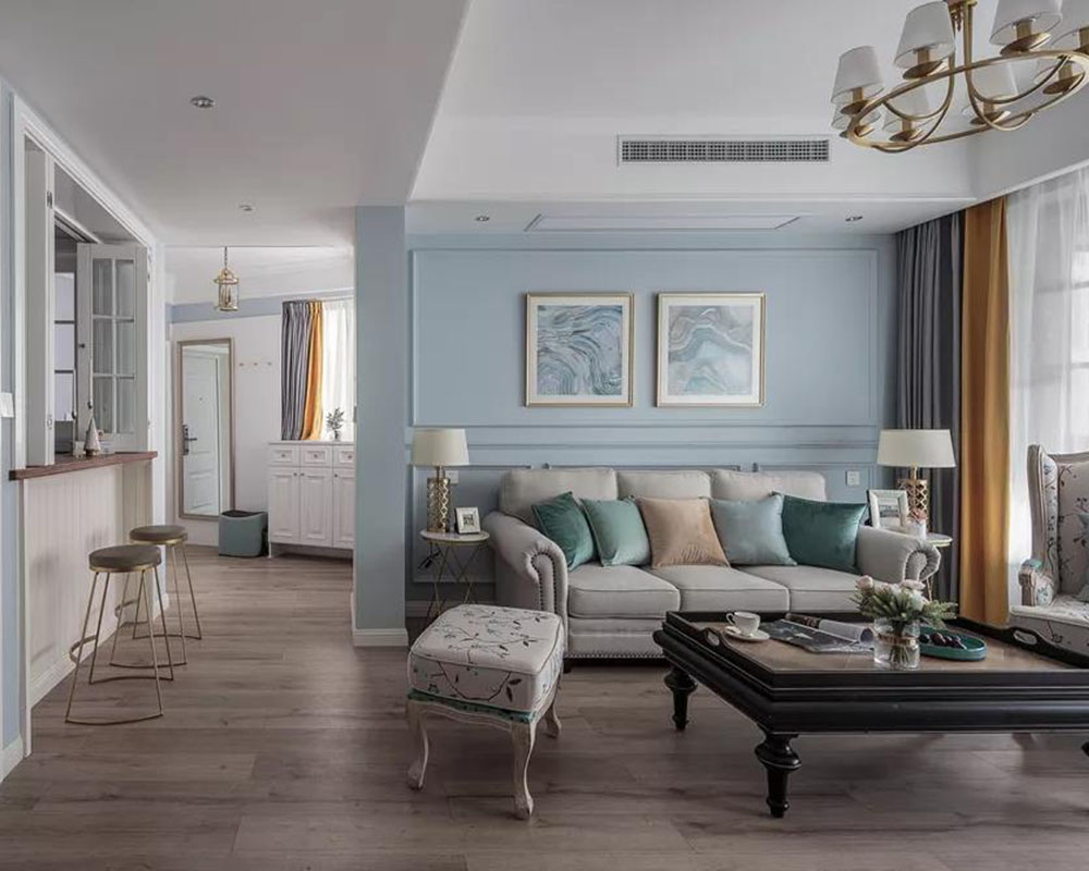 這是一套100平米的現代美式風格裝修案例,老房子的實用率比較高,整體空間雖說有所瑕疵,比如沒窗戶的廚房,但在巧妙的設計利用下,卻布置出了一個情趣端莊的居住氛圍。