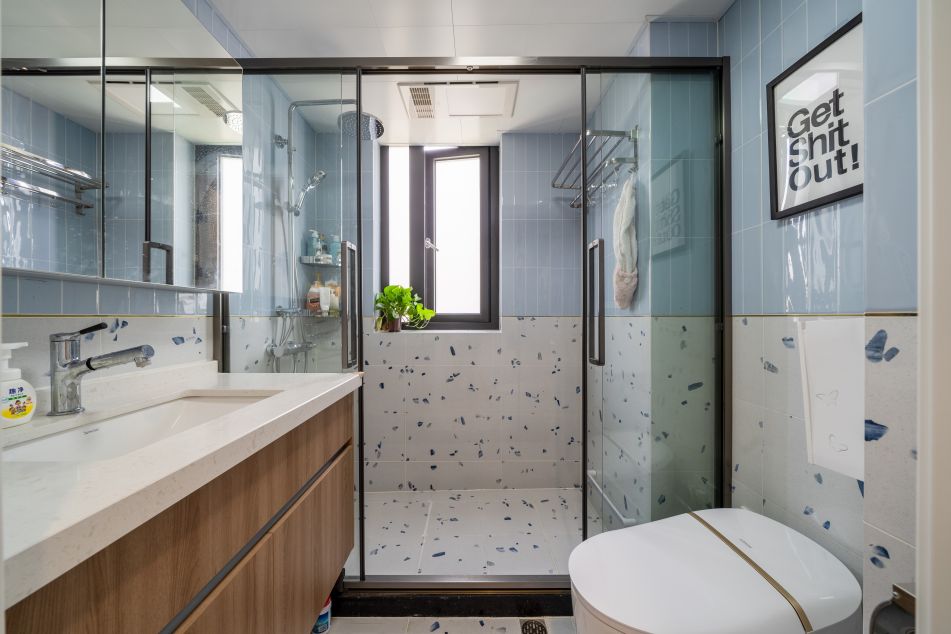 主衛較小,簡單的干濕兩分離已經足夠使用。色彩搭配清新有創意。