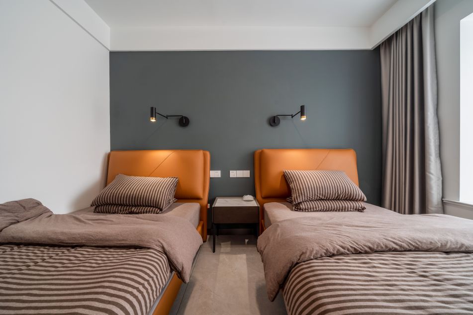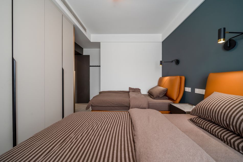 雙胞胎兄弟喜歡在各方面都是一樣的,床品也不例外;對(duì)稱的布局,簡(jiǎn)單的裝飾,給予空間舒適溫馨。