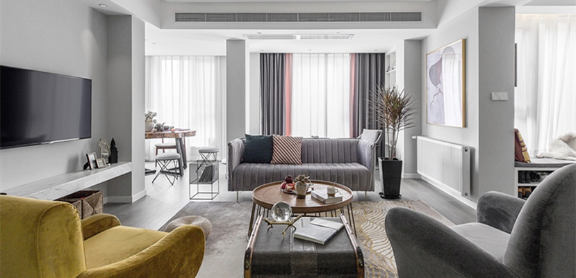 整體以簡單素雅的空間基調,通過簡單優雅的簡約灰空間,搭配自然淺淡的木質感,讓空間呈現出一種安靜舒適的氛圍感。