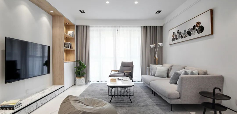 整體以簡單素雅的空間基調,通過簡單優雅的簡約灰空間,搭配自然淺淡的木質感,讓空間呈現出一種安靜舒適的氛圍感。